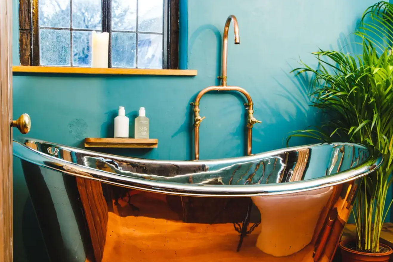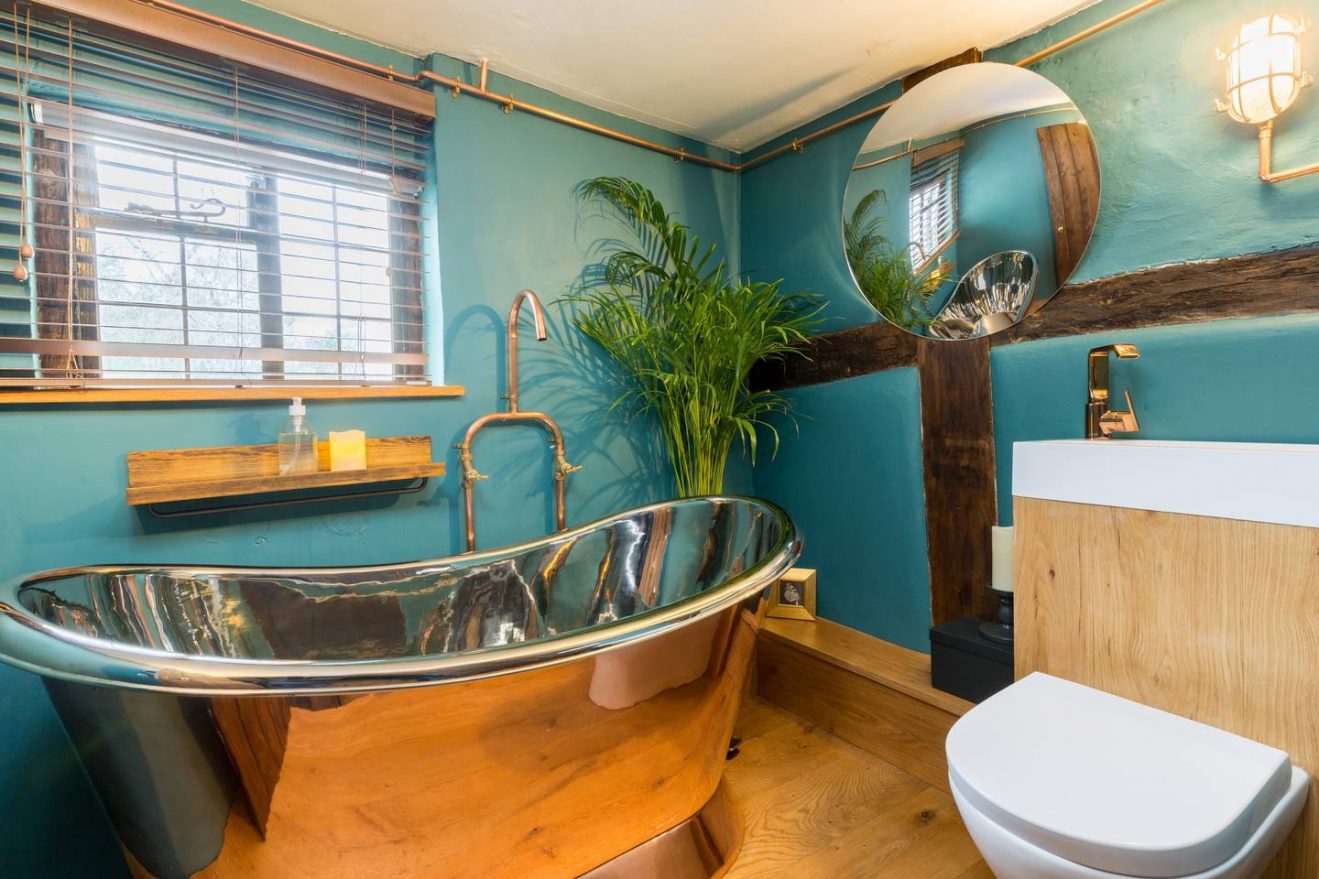 There are two bathrooms at the property, one houses a freestanding copper ‘Hurlingham’ bathtub, the other a large metro tiled walk in shower.