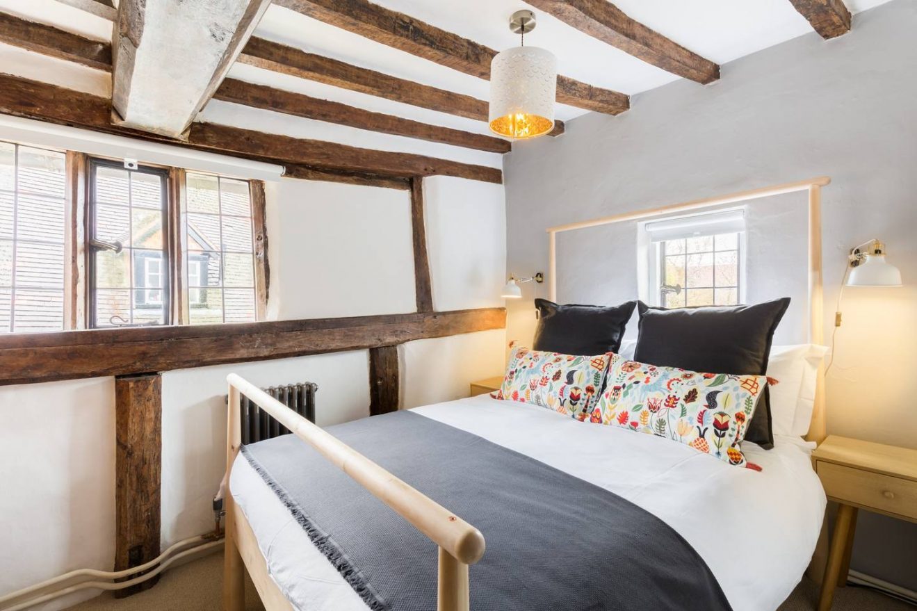 Bedroom one, to the front of the property and part of the original 15th century Wealden Hall, is a small and comfortable oak beamed room with a double bed.