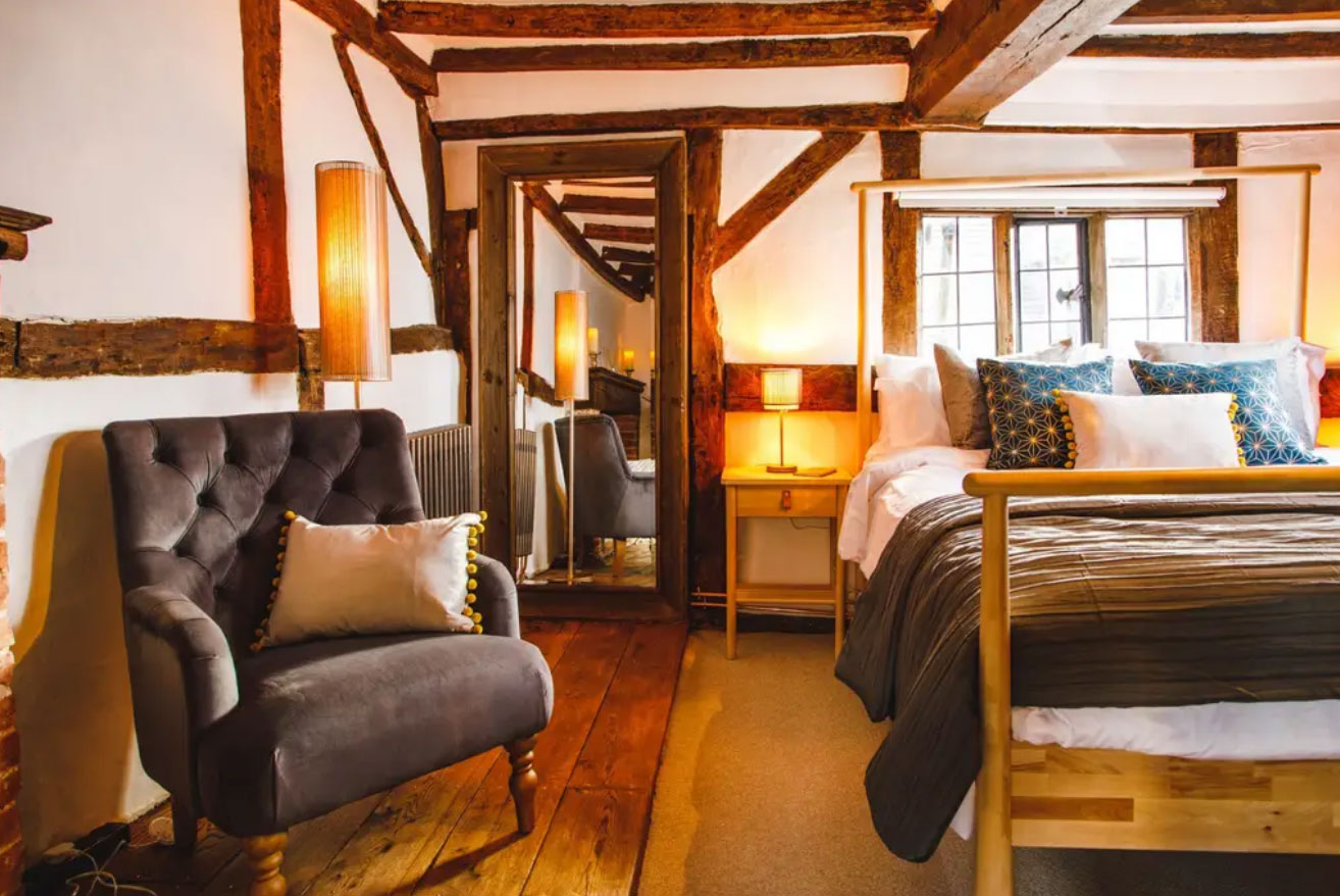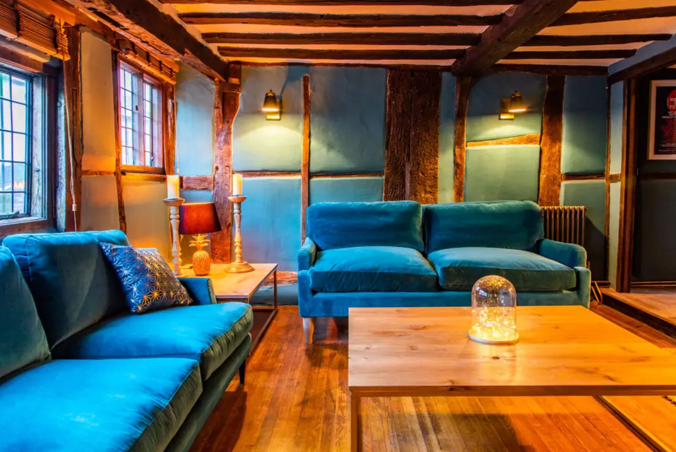 Masons Court is a warm and cosy medieval property which has many quirky features including low doors, uneven floors and wattle and daub walls.